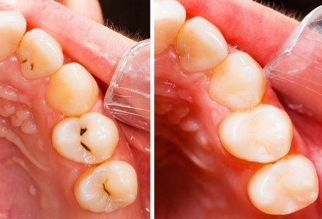 A procedure that removes the portion decay in a tooth and replaces it with tooth coloured filling material (composite).