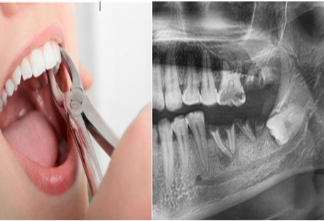 Removal of severely damaged (extraction) and unerupted tooth (impaction).